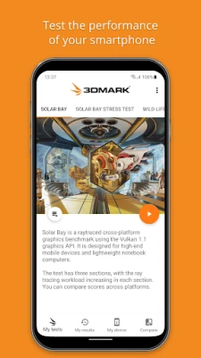 3DMark is designed around data-driven stories that help you learn more about your smartphone and tablet. With its unique charts, lists and rankings, 3DMark gives you unrivaled insights into the performance of your device.