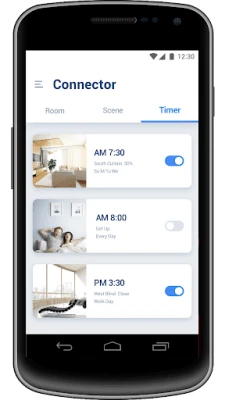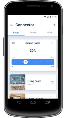 With 'Connector' App, you can: - Control up to 30 motorized window coverings - Control up to 20 rooms - Control up to 20 scenes - Control up to 20 timers
