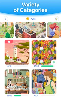 💥 Various number of hidden differences: 15, 30, 50, 75. Choose the difficulty you feel like fits you most. Easy levels with 15 differences or the trickiest ones with 75?