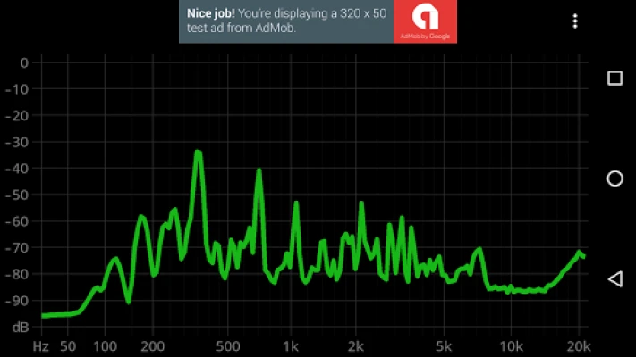 This real-time spectrum analyzer (RTA) / audio visualizer features: - 176 high-quality frequency bands [20Hz to 22kHz] - Logarithmic frequency scale to match human perception - Low latency for high responsiveness - High frame rate to see smooth frequency and amplitude movements - Low battery drain due to high performance native code - Fast graphics using OpenGL ES 2.0 - FFT window size 4096 @ 60 frames per second